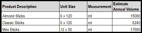 Within this request, we are seeking producers of Ice Cream Sticks, we require over 39,000 units per annum (estimate in Year 1, and will grow significantly). We are seeking popular products such as classic chocolate coated sticks, mini ice cream sticks, almond coated ice cream sticks, etc. You can see the core range attached.