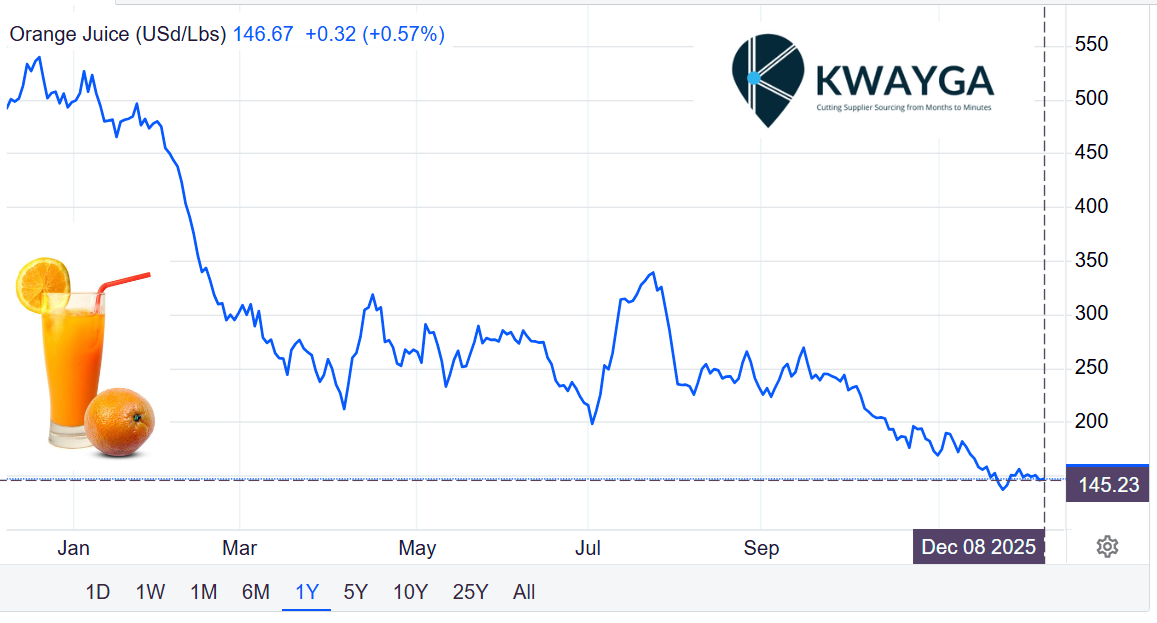 Orange Juice Prices experience a massive collapse in 2025